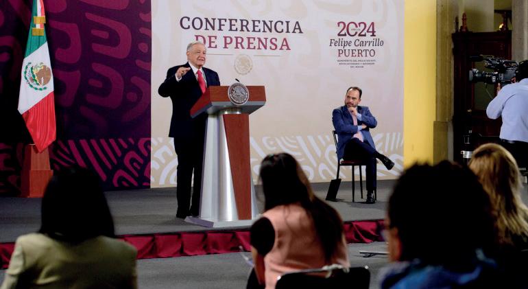 Después se le volvió a indicar que no fue determinación del INE, y el presidente solo mencionó: “Bueno, haya sido como haya sido sí era para comentarlo”.