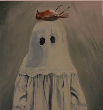 para proyectos cinematográficos. Para ella, los procesos artísticos son también un desafío constante: “Me encantan los retos cuando se trata de crear y buscar soluciones y propuestas visuales”. Su obra se nutre de la melancolía y la nostalgia, conceptos que la han llevado a explorar la naturaleza humana y la infancia como territorios donde se depositan sus inquietudes sobre el tiempo y la vida. Esa búsqueda se materializa en su primer proyecto individual, Lotería infantil, corre y se fue, apoyado por el Sistema de Apoyos a la Creación y Proyectos Culturales de la Secretaría de Cultura y el Instituto Cultural de Aguascalientes, a través de la emisión 2024 del PECDA, del cual resultó beneficiaria en la categoría Jóvenes Creadores. Este proyecto actualmente se encuentra en el Centro de Artes Visuales (Venustiano Carranza 111, Centro) y puede visitarse lunes, martes y miércoles de 10:00 a 15:00 horas y jueves y viernes de 10:00 a 20:00 horas. Permanecerá en exhibición hasta el 29 de agosto. La muestra propone una reinterpretación pictórica de las cartas de la lotería tradicional mexicana, cada una de ellas transformada en una metáfora de la violencia infantil, entendida desde distintas perspectivas.