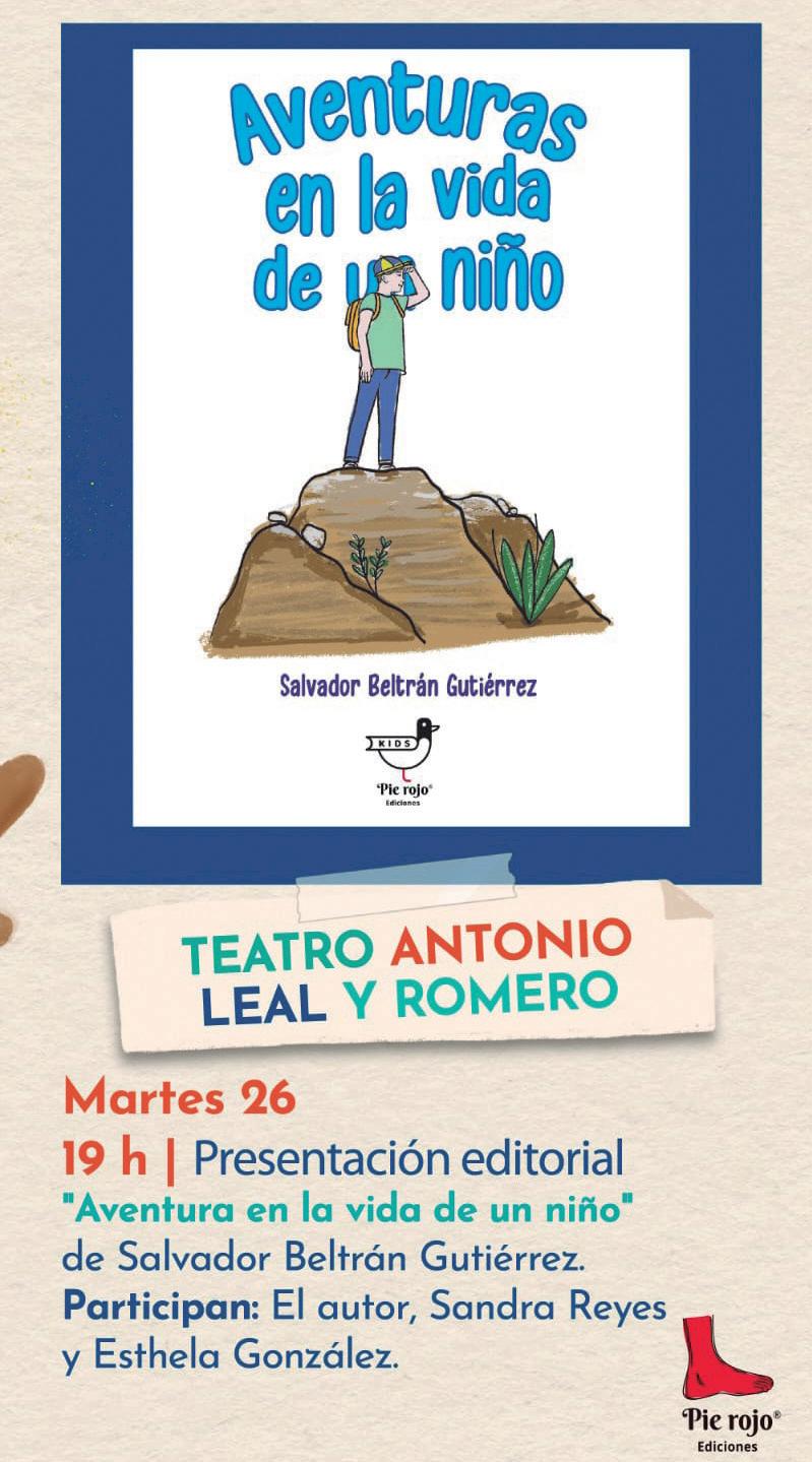Este martes 26 de septiembre a las 16:30 horas se llevará a cabo el taller infantil “Empatía, cuidado animal y medio ambiente”, en Casa Terán; a las 17:00 horas en el Teatro Antonio Leal y Romero se realizará el conversatorio “¿Y si jugamos a pensar?”; a las 18:00 horas el conversatorio sobre “Manual de magia y otras falacias, especial brujas”, y para finalizar la presentación editorial “Aventuras en la vida de un niño” de Salvador Beltrán Gutiérrez, a las 19:00 horas.