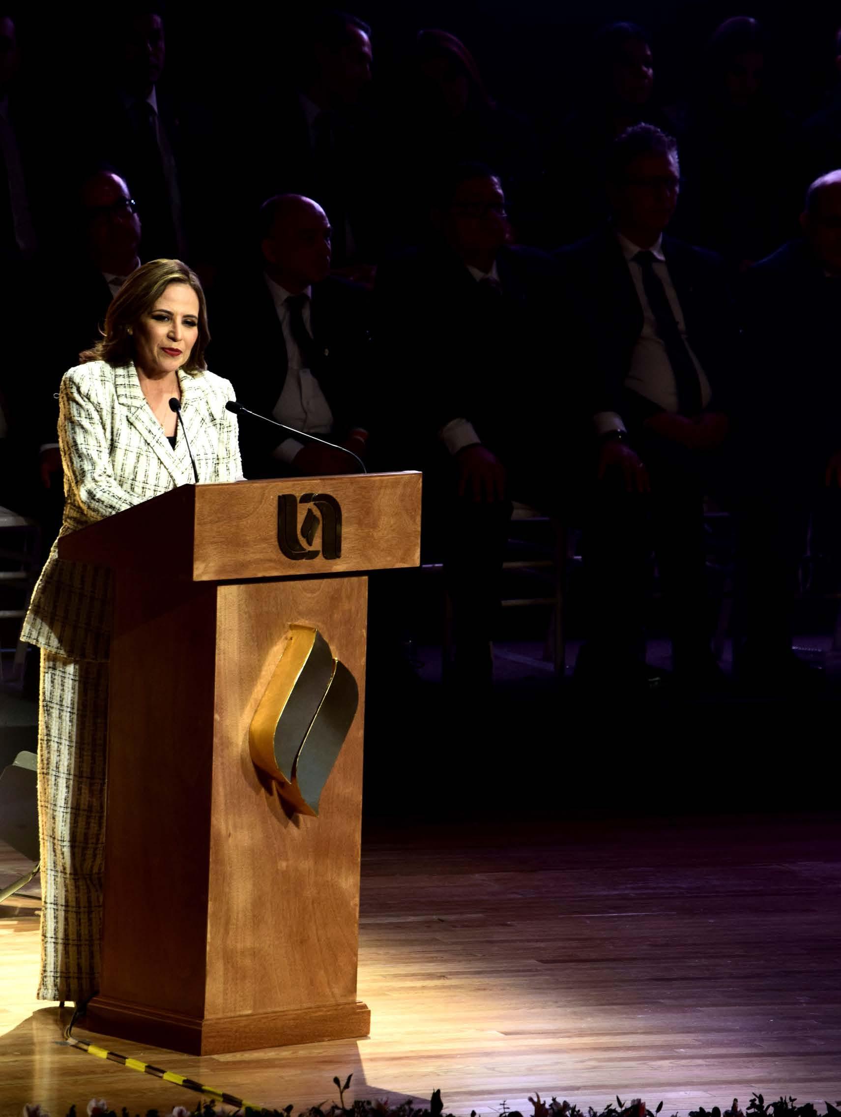 Al rendir su Segundo Informe de Actividades como rectora al frente de la Universidad Autónoma de Aguascalientes, Sandra Pinzón destacó su compromiso con la excelencia