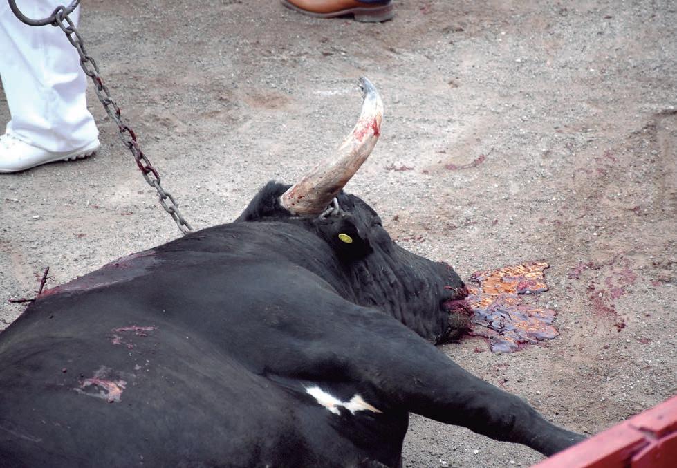 Este es el momento en que todo el mundo mira hacia otro lado, para no ver, justamente, esto: en lo que acaba una vida que hacía apenas unos minutos palpitaba y corría y bufaba, etc., y que ha sido destruida por un hombre, para la diversión de muchos. Entonces lo que queda es la podredumbre que se abre paso ante el triunfo de la muerte.