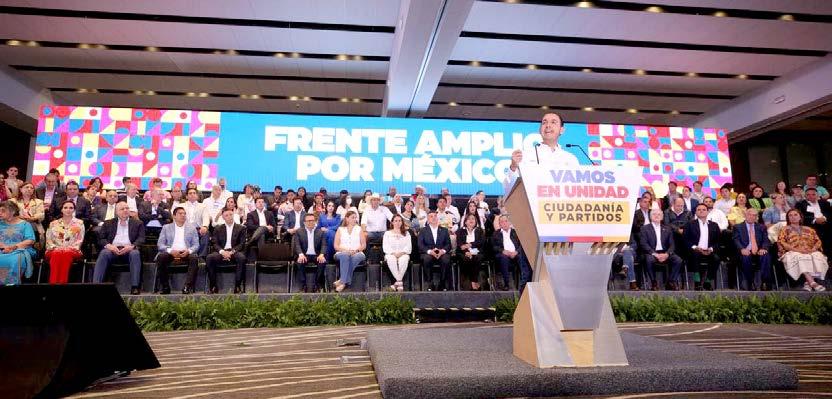 Otra diferencia en la presentación del proceso para elegir al Responsable Nacional para la Construcción del Frente Amplio Opositor, es que las dirigencias partidistas colocaron una primera fila de invitados, con asientos numerados para exhibir a los suspirantes del Frente Opositor, seis del PRI: Beatriz Paredes , Claudia Ruiz Massieu , Alejandro Murat , Ildefonso Guajardo, Enrique de la Madrid y José Ángel Gurría . Cinco del PAN: Xóchitl Gálvez , Lily Téllez , Santiago Creel, Gabriel Quadri , Juan Carlos Romero Hicks y José Luis Preciado. Uno del PRD: Silvano Aureoles; y el “independiente” Gustavo de Hoyos