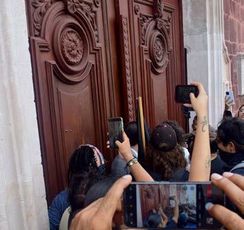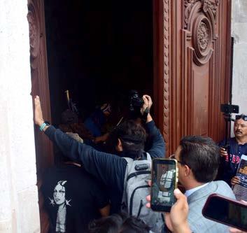 Cuando llegaron a Palacio, las puertas estaban cerradas. Un funcionario de la SEGGOB salió a dialogar en plan conciliador, pero detrás de él los guardias mantenían la instrucción de no dejar pasar a nadie. La escena era surreal: el funcionario hablaba “como en vecindad”, del otro lado del portón, mientras los ambientalistas exigían acceso.