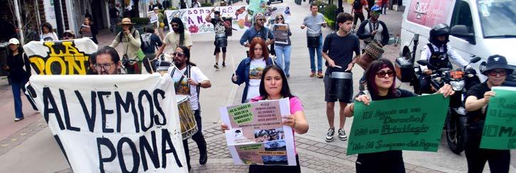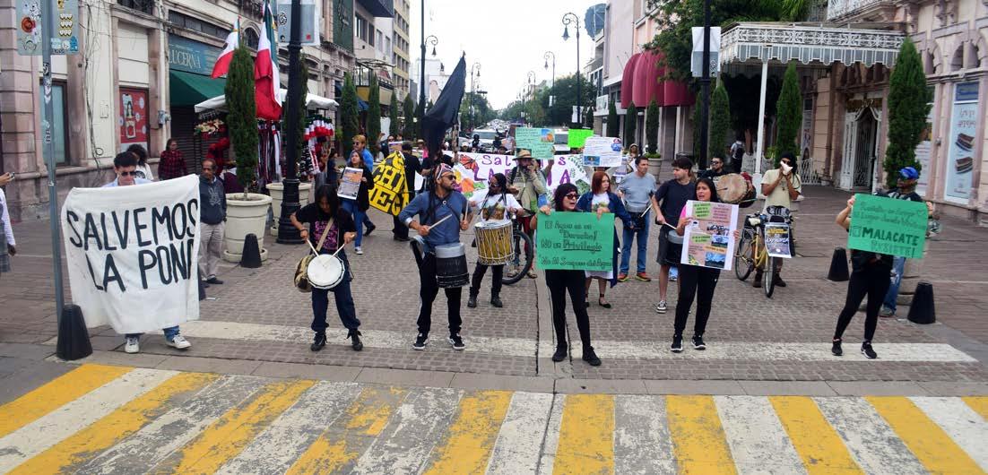 Poco después de las nueve de la mañana de ayer comenzó a aglutinarse un centenar de personas en la esquina de Madero con Zaragoza , en pleno centro de la ciudad. Desde lejos se veía una manta que decía con letras grandes: “Salvemos La Pona”. Las exigencias eran claras: más atención a esta área natural, freno a cualquier intento de construcción y, sobre todo, transparencia en las negociaciones que las autoridades mantienen con el sector privado respecto a las hectáreas en disputa.