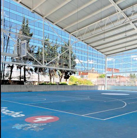 Es un lugar con espacios para practi car diferentes deportes con un ambiente agradable: cuenta con 4 canchas de tenis, squash, 4 de frontenis, 4 de baloncesto techadas, espacio para voleibol mon tando las redes, sanitarios sin vestidores, una explanada grande, buenas rampas para discapacitados, tiendita para bebi das y snacks, se puede estacionar el auto dentro de la unidad sin costo y tienen vigilancia excepto cuando hay juego pro fesional o evento en la duela del hnos.