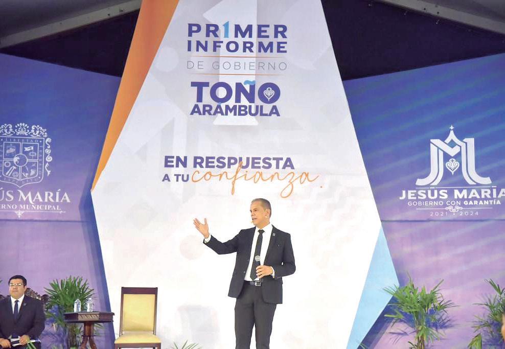 Así como la gobernadora Teresa Jiménez Esquivel acom pañó a Daniel Romo Urrutia en Calvillo, ayer hizo lo mismo con Antonio Arámbula , quien en la sesión solemne también contó con la presencia de la diputada María de Jesús Díaz Marmolejo, presidente de la Mesa Directiva del Congreso, y la juez María de Lourdes Bermúdez Sánchez , en representa ción de Juan Rojas García , presidente del Supremo Tribunal de Justicia del Estado; a quienes acudieron a la invitación del jesusmariense, se les presentó un informe sucinto, y llama la atención que Arámbula López , al hacer el recuento de los logros de su administración, hizo énfasis en los avances en ma teria de cultura, educativa y deportes en Jesús María; sin duda, fue un enfoque distinto el de la presentación de este informe; de nuevo, bien y de buenas.