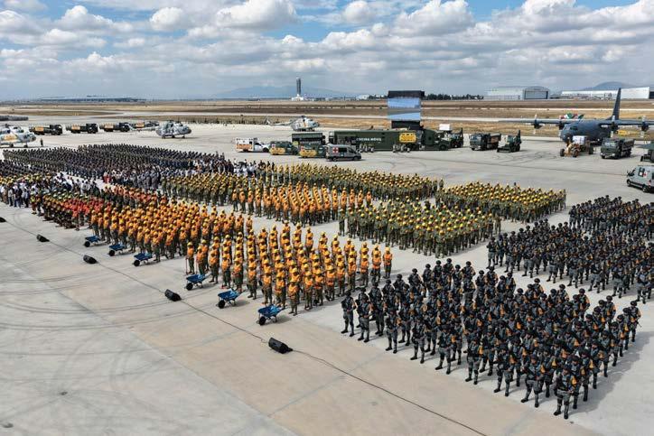 a la población. También realizó la entrega de condecoraciones a 120 elementos del Ejército; 30 de la Fuerza Aérea Mexicana; 120 de la Guardia Nacional y 120 de la Marina, quienes participaron en la aplicación del Plan DN-III-E y Plan Marina, respectivamente, así como reconocimientos a 65 servidores públicos que participaron en las labores ante la emergencia. En su mensaje, hizo un llamado a las Fuerzas Armadas y a funcionarios de los cuerpos de auxilio a nunca permitir que alguien minimice el valor de su entrega a la nación, ya que no sólo portan un uniforme, sino que representan historia, valentía y compromiso.