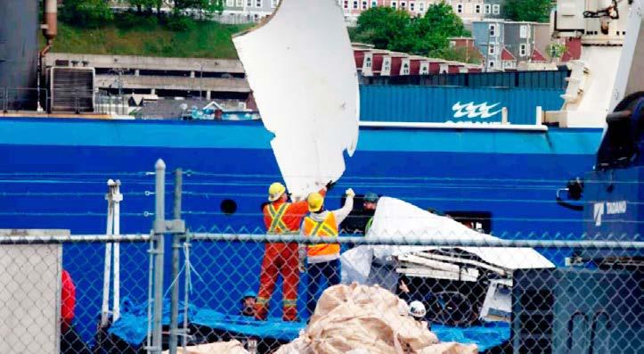 catastrófica. En el muelle de la Guardia Costera de Terranova, Canadá, se pudieron ver las piezas de equipo cubiertas con lona blanca que estaban siendo descargadas del Horizon Artic. Horizon Artic es la empresa marítima propietaria de los buques y Pelagic Research Services es la propietaria de los vehículos teledirigidos o ROV que sacaron los restos a la superficie.
