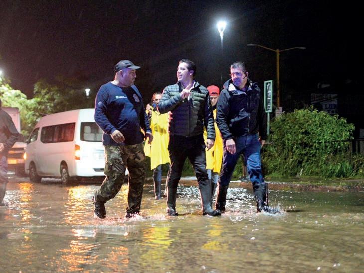 La Policía Vial de la Secretaría de Seguridad Pública Municipal se mantiene atenta para cerrar la circulación en zonas inundadas como el desnivel de Gabriela Mistral y Convención de 1914 Oriente, para evitar que conductores intenten pasar.