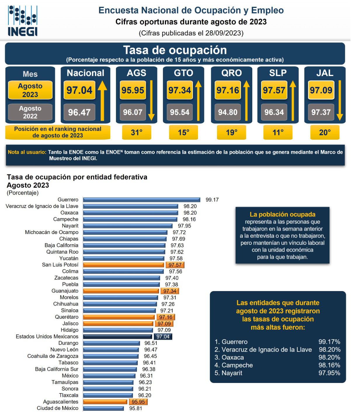 La Tasa de Desocupación disminuyó 0.2 puntos porcentuales, en Aguascalientes descendió a 95.95 en comparación con el año anterior. La informalidad sigue dominando el mercado laboral mexicano: INEGI