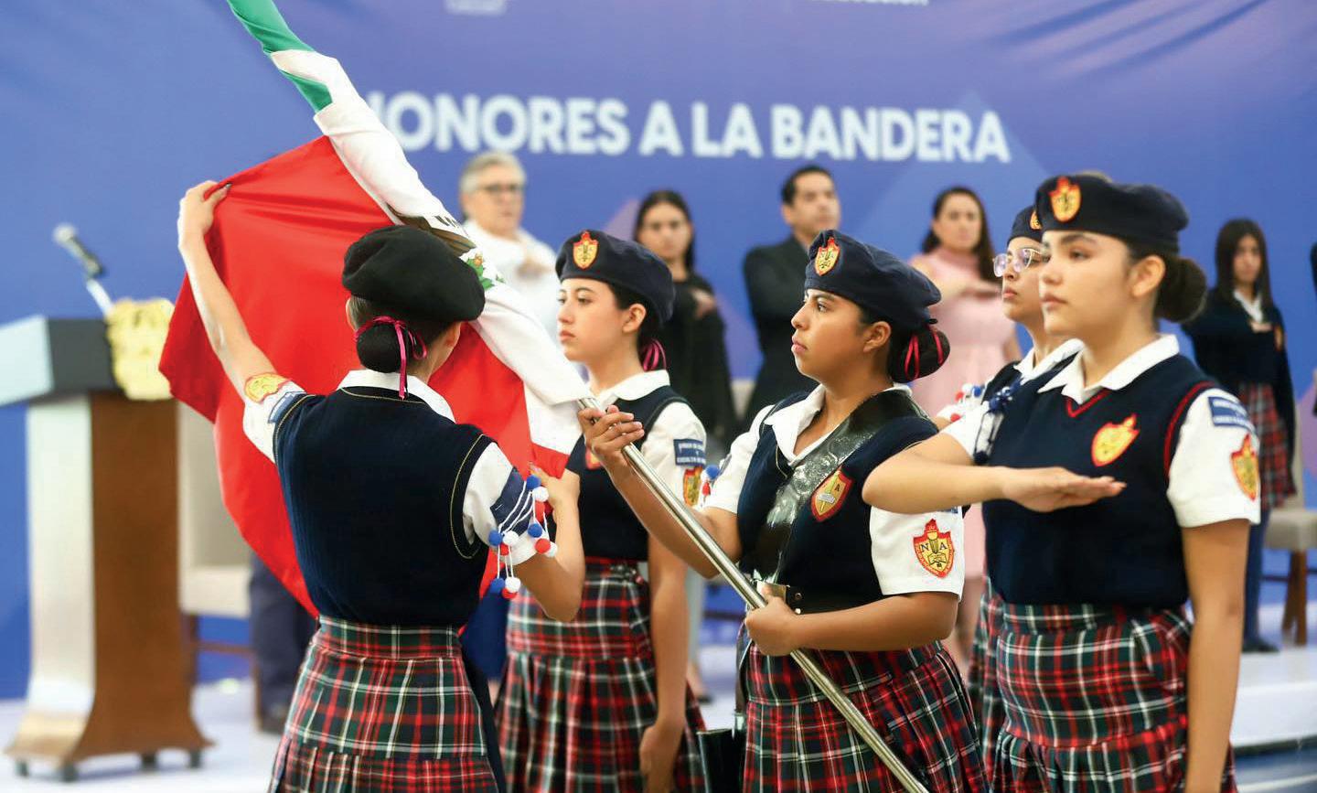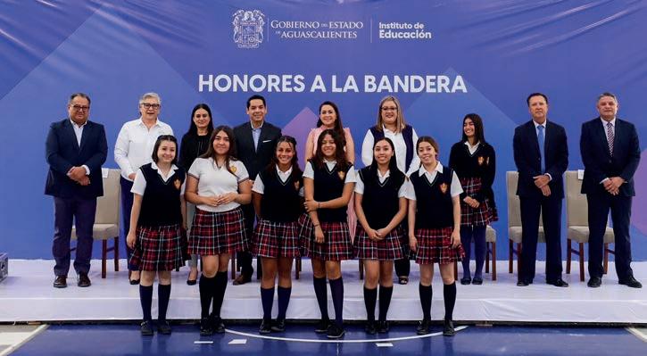 La gobernadora Tere Jiménez da la bienvenida a clases a alumnos de Aguascalientes al encabezar la ceremonia de honores a la bandera en la Escuela Normal del Estado