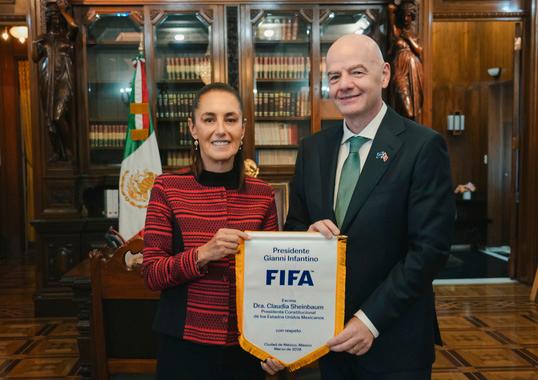 El presidente de la FIFA obsequió a la presidenta de México las tarjetas oficiales de la FIFA que utilizarán los árbitros durante la justa deportiva. “Preparando este Mundial que va a ser una fiesta, que va a ser un éxito para México, porque somos todos mexicanos”, comentó Gianni Infantino.