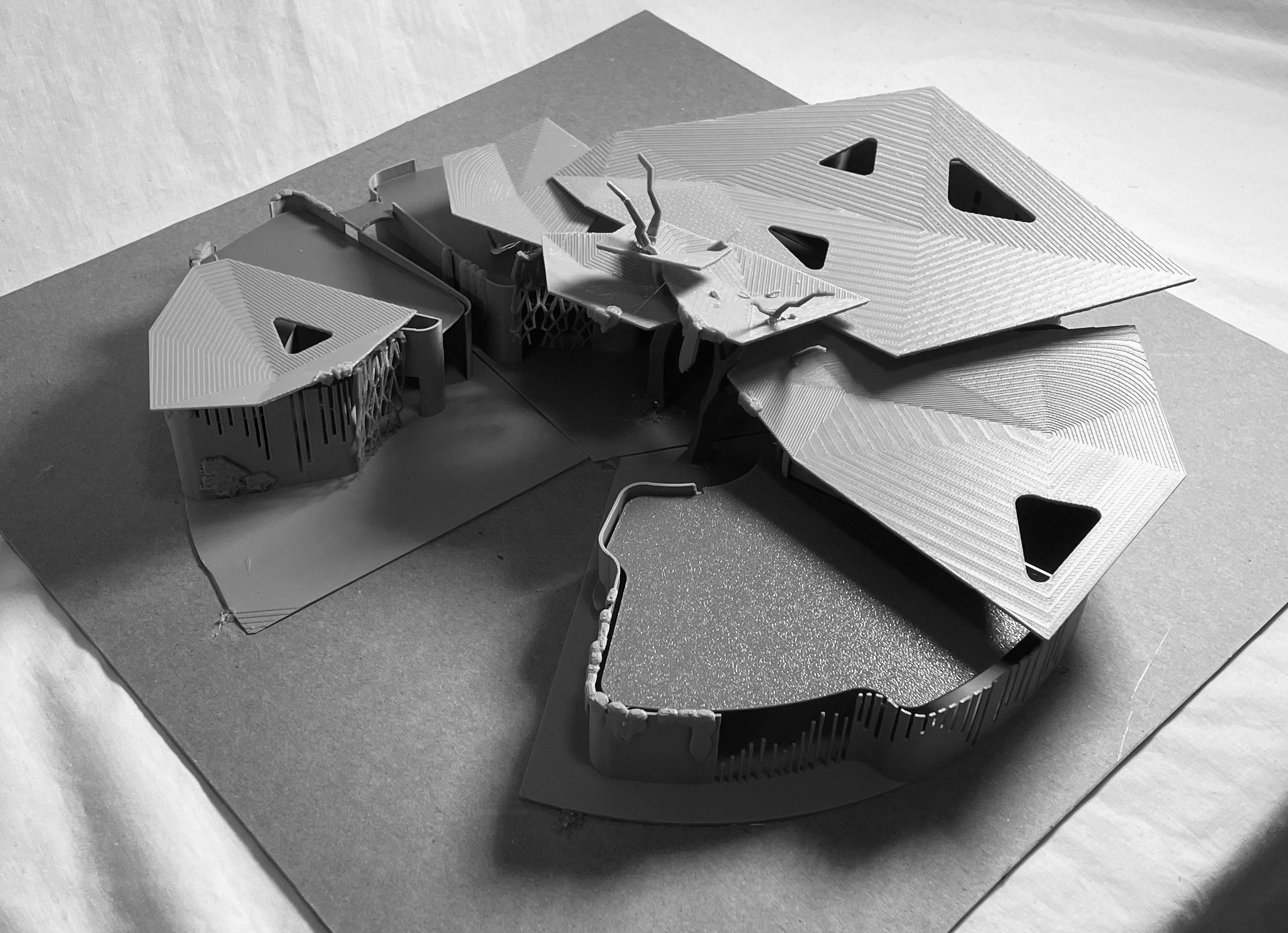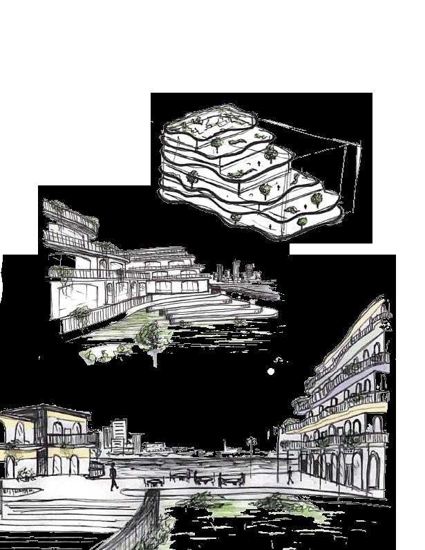 I sketched ideas for solving envirnmental solutions such as climate change, deforestation, and sustainable rain water collection. Then I incorporated the sollutions into the building design.