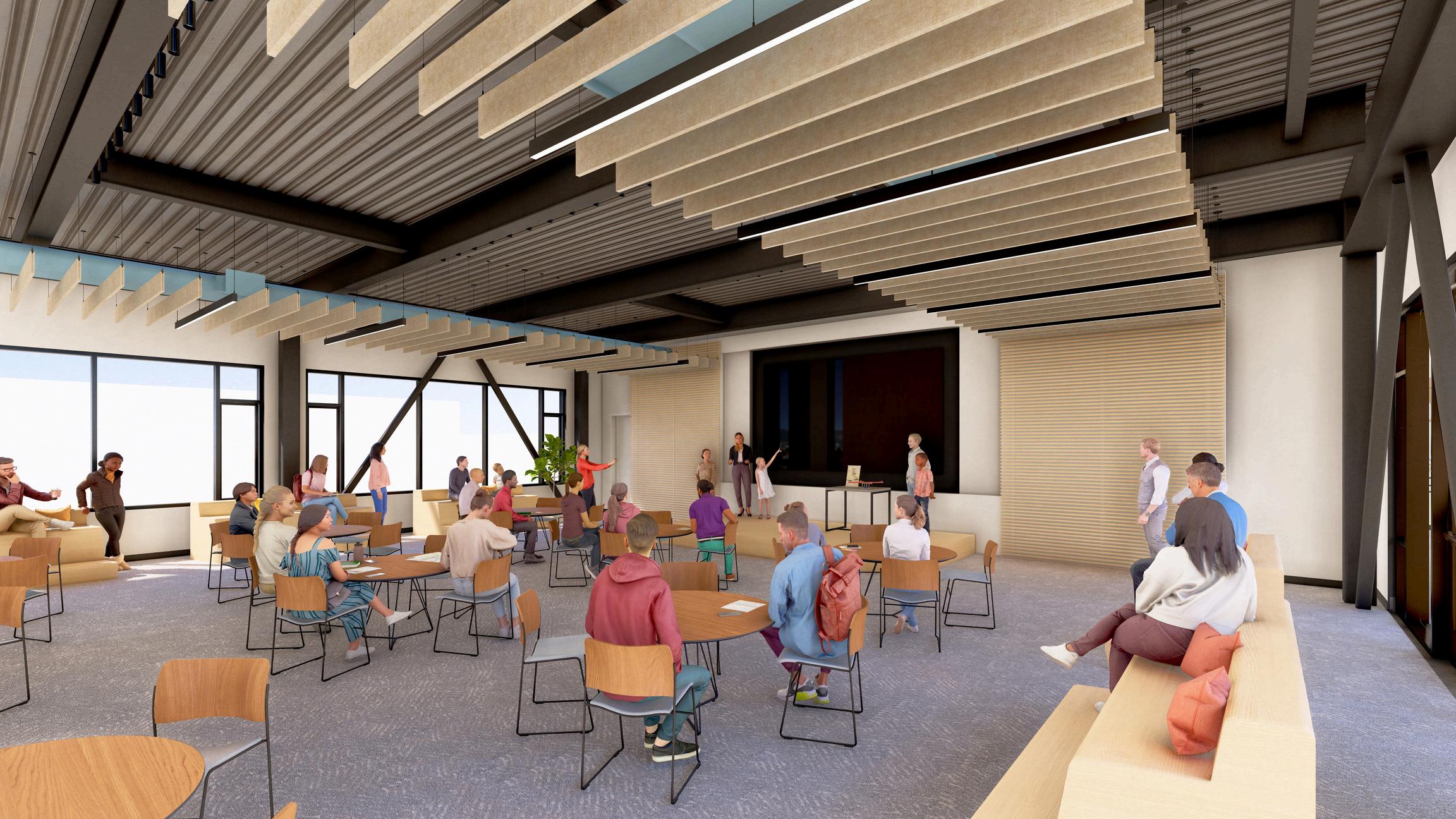 These flexible, human-centered environments will become launching pads for bold innovations and meaningful relationships. The reimagined Community Hall will host global speakers, thought leaders, and dynamic programming all under one roof.