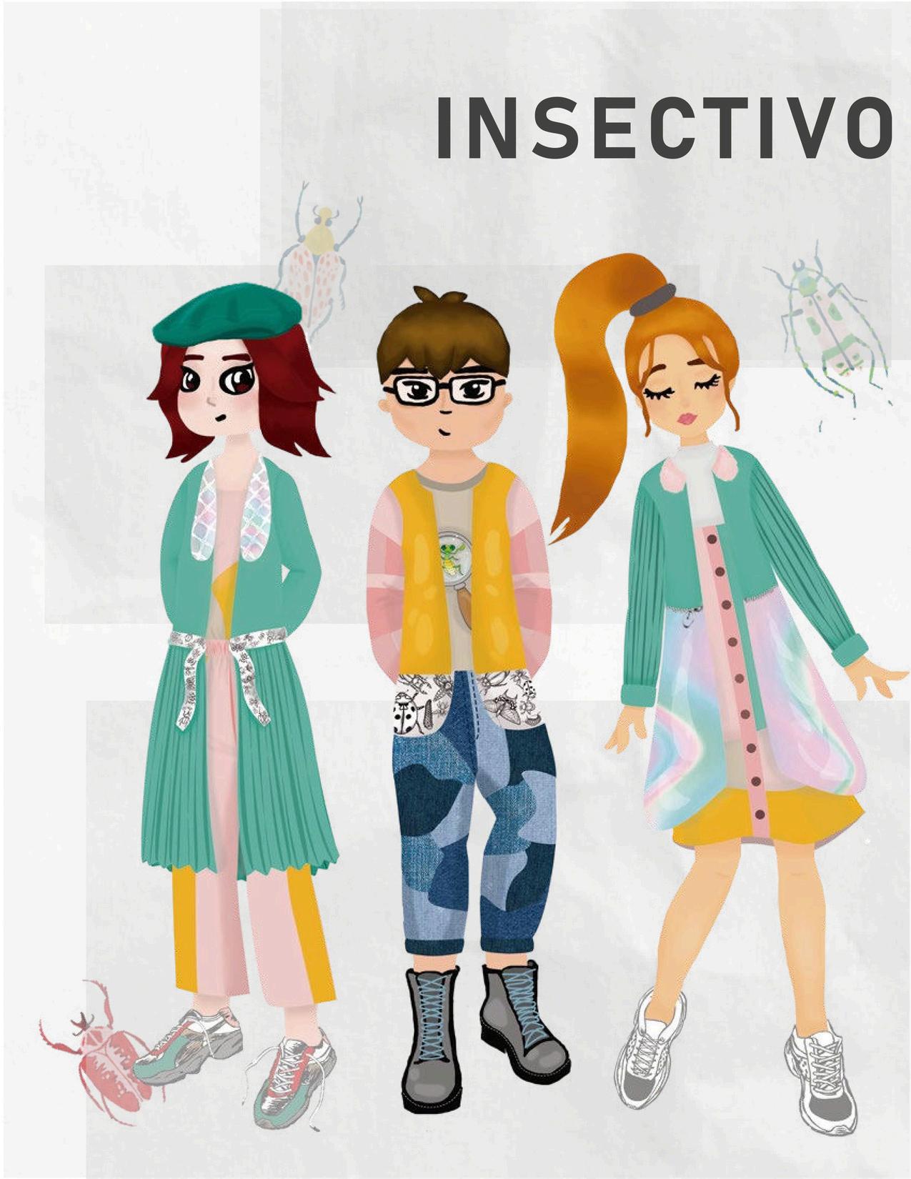 Todo lo que los niños quieren, juegos, color, comodidad, compartimentos secretos y muchísima diversión en una sola colección Inspirada en los insectos, por ser uno de los detonantes de curiosidad en la infancia, los aplicamos a prendas interactivas, texturas, y formas, sin dejar de lado la moda y estética.
