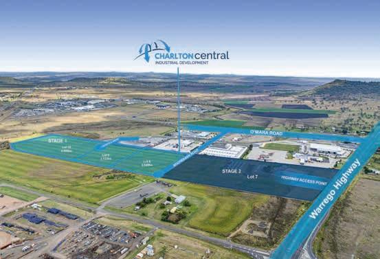 LJ Hooker Commercial Toowoomba and South-West QLD are pleased to present a rare opportunity to purchase freehold industrial lots in the soon-tobe-completed Charlton Central. This development is designed with flexibility, efficiency and scalability in mind, catering to a wide range of users seeking strategically positioned, high-quality land with strong infrastructure and connectivity. Charlton Central’s initial release will include three expansive freehold lots ranging from 3 to nearly 5 hectares, with future stage 2 lots to be confirmed. This staged approach gives both local operators and national groups the chance to secure a site tailored to current requirements while allowing for future expansion. Key features of Charlton Central include a blend of freehold and community title options to suit diverse industrial needs, fully serviced lots with mains water, sewer, stormwater drainage and electricity, and dual access to the development via the Warrego Highway and O’Mara Road (Moorebank Road and Logistics Drive).