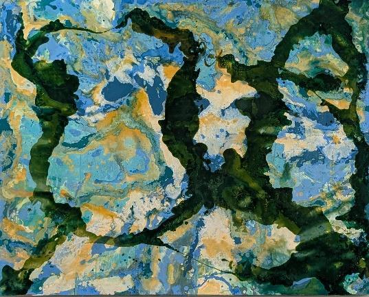 Imagen No. 12: Tempestad. Técnica pintura fluida en tela sobre cartón, 2024