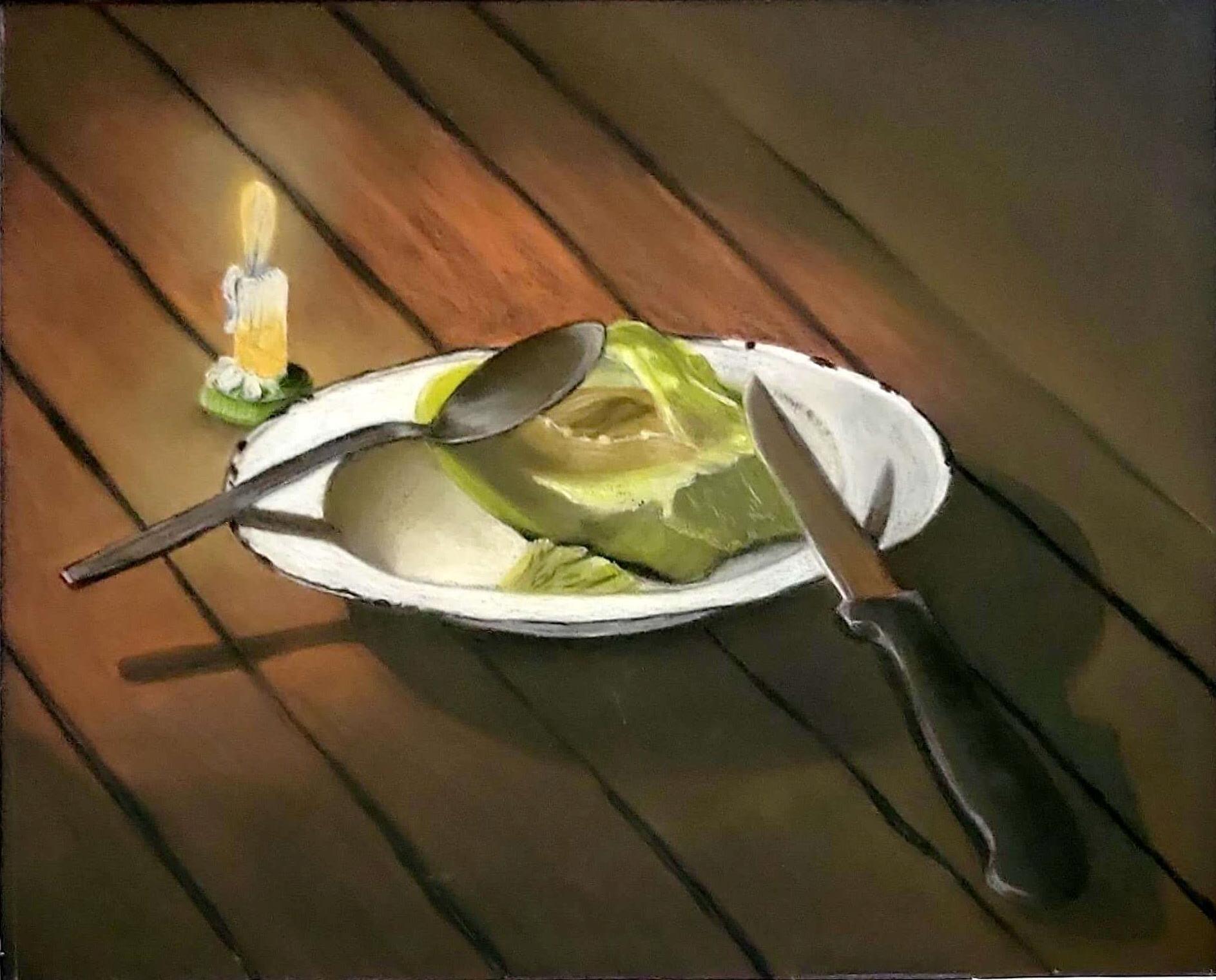 A la luz de la vela (2) Tiza pastel sobre cartón negro