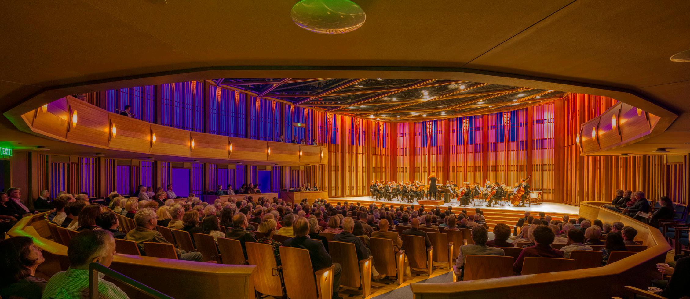 THE BAKER-BAUM CONCERT HALL: A intimate 513 seat performance space with superb acoustics ideally suited for chamber music and classical recitals. Its design incorporates state-of-the-art technology and adjustable acoustics, making it a world-class space for amplified concerts, film, dance, theater, lectures, and more.