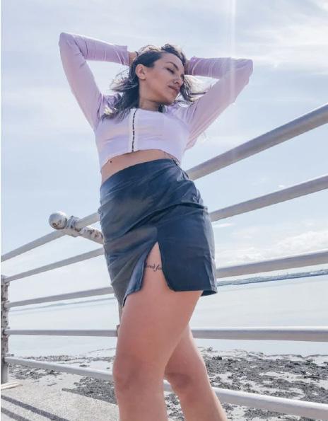 Black Leather Skirt and purple milkmaid top are amongst the few items available on their website currently -Photo Credit: Ohuni Clothing.