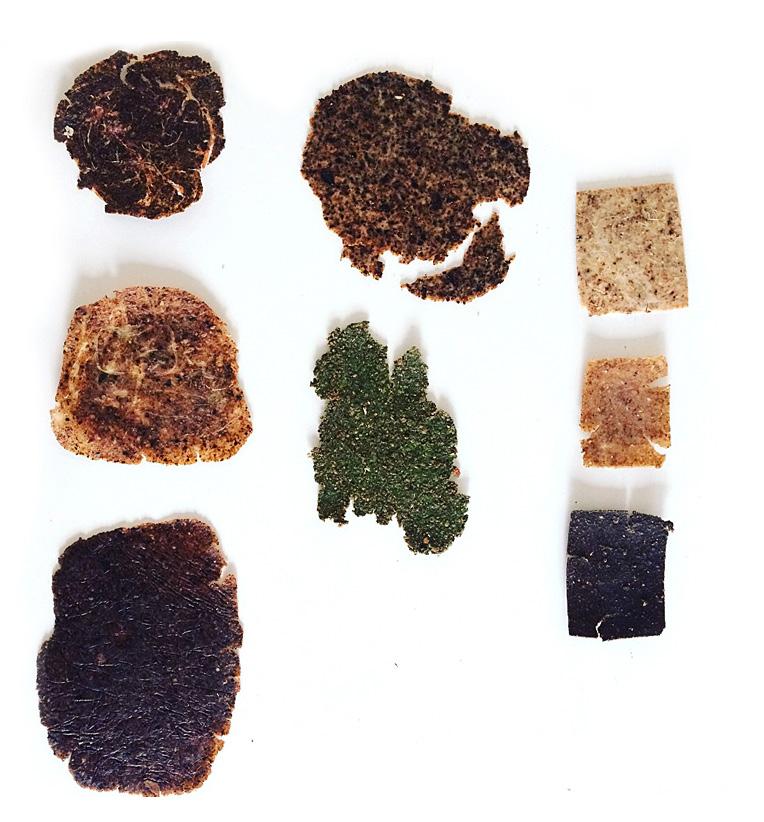 LES RÉSIDUS DE PAIN SONT TRANSFORMÉS EN UN NOUVEAU MATÉRIAU, AVEC UNE GAMME DE TEXTURES, DE COULEURS ET D’ODEURS DIFFÉRENTES, L’OBJECTIF ÉTANT DE RÉVÉLER LES QUALITÉS DE CE QUI AVAIT ÉTÉ JETÉ.
