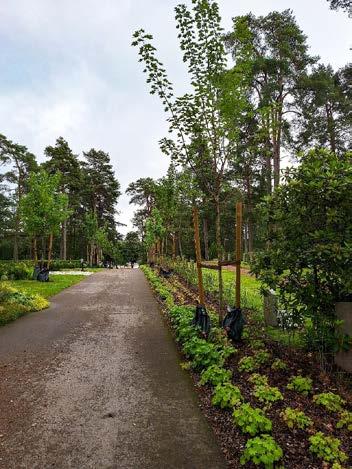 På Skogskyrkogården är vi i full gång med anläggning och återbruk av Allmänna linjerna, där det till nästa år kommer invigas tre nya askgravplatser och en kistgravlund. I samband med detta arbete byttes också allén från kyrkogårdens östra ingång ut, och en lång rabatt med perenner planterades. Skogskyrkogårdens äldsta delar är över 100 år gamla, och en del träd behöver bytas ut kommande år för att bibehålla ett levande trädskikt på kyrkogården.