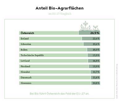 Je nach Größe des Bio-Betriebs kann das auch mehrere Tage dauern. Erst wenn die Kontrollor*innen bestätigen, dass der Betrieb alle Auflagen erfüllt, wird das Bio-Zerti fikat verliehen. Erst dann dürfen die Produkte mit dem EU-Bio-Logo gekennzeichnet werden. Noch strenger ist das AMA-Biosiegel: Das erhalten Betriebe nur, wenn sie die über der EU-Bio-Verordnung liegenden Richtlinien des AMA-Biosiegels zusätzlich erfüllen.
