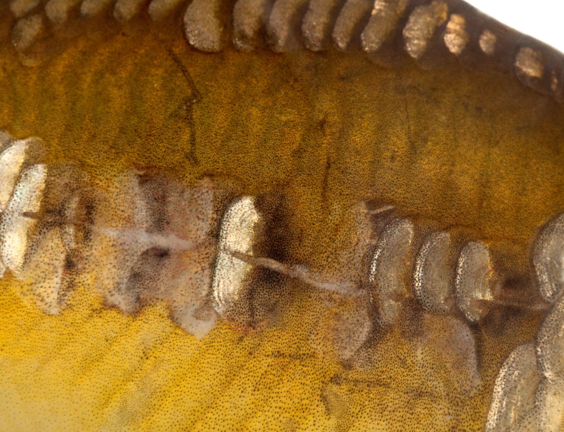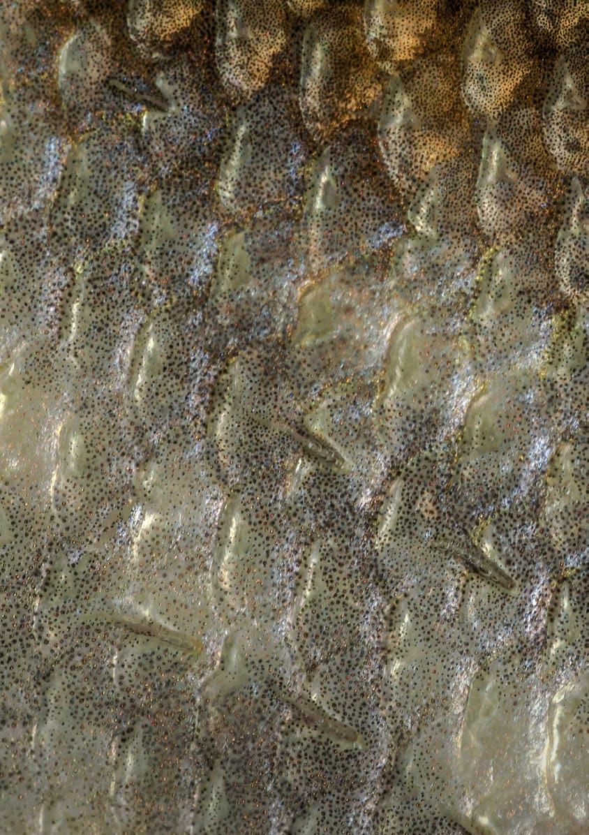 Der Karpfen wird zuerst noch nicht ausgenommen. Mit einem geeigneten Schupper (oder einem Löffel bzw. mit der Rückseite eines Messers) vom Schwanz her beginnend gegen den Strich die Schuppen aus der Haut entfernen.