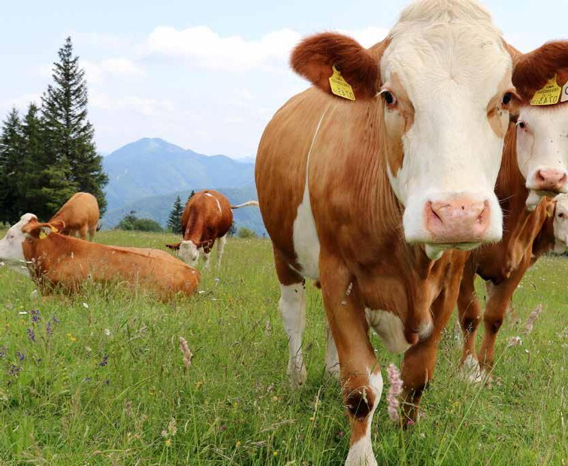 Sie haben braun-weiße Flecken und kommen ganz oft auf unseren heimischen Bauernhöfen, Weiden und Almen vor. Ihren Flecken haben sie auch ihren Namen „Fleckvieh“ zu verdanken.
