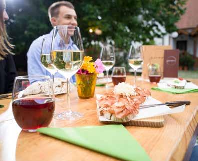 Weinviertel DAC-Beuschel, hausgem. Grammel- und Fleischknödel, hausgem. Blut- und Presswurst, Spezialitäten vom Weinviertler Rind, hausgem. Sülzchen und Terrinen, hausgem. Mehlspeisen, prämierte Qualitätsweine, Jazz & Wine, schattiger Laubengarten, Picknick im Weingarten.