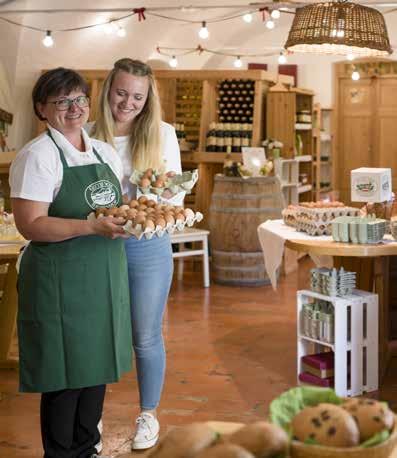 Hausgemachte Schmankerl, Ziegen- und Büffelkäse vom „PAGET“ aus Diendorf am Kamp, Fischspezialitäten aus Gföhl, große Sortenvielfalt mit prämierten, nachhaltig zertifizierten Weiß- und Rotweinen.