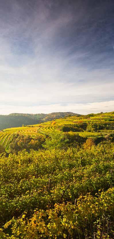 Südlich der Donau dehnen sich die Weingärten über drei sanfte Hügellandschaften aus: das Leithagebirge, das Arbesthaler Hügelland und die Hainburger Berge. Klimatisch ist Carnuntum den Einflüssen der Donau und ihrer Auwälder unterworfen, die Kühle aus dem Norden bringen. Die hier ansässigen Winzerinnen und Winzer erforschen seit mehr als 30 Jahren, in welchen Rieden die spannendsten Weine entstehen, allen voran die „Rubin Carnuntum“-Weingüter. Ihr besonderes Augenmerk gilt dabei der eleganten Interpretation des Zweigelt, der hier auf rund einem Viertel der 830 Hektar Rebfläche gedeiht.