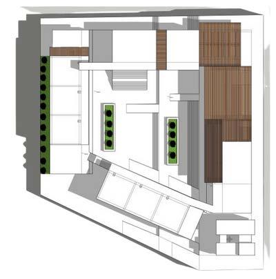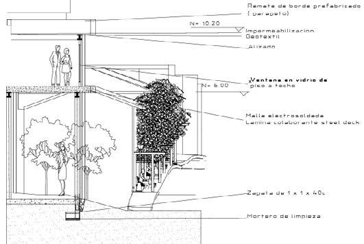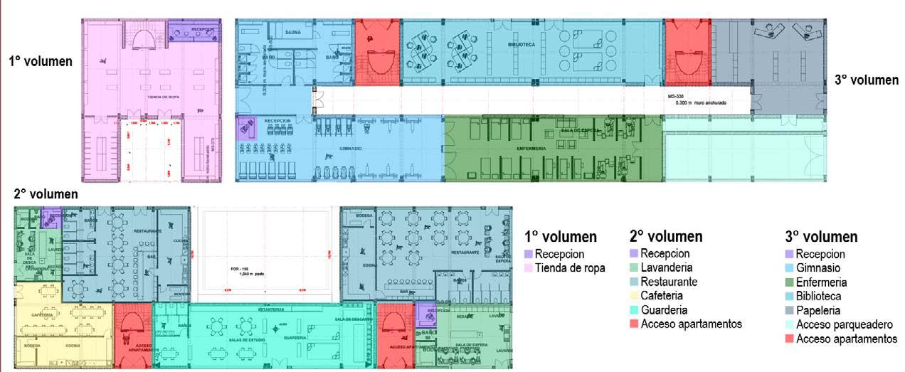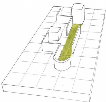 aqui se remarca mas la conformacion del acceso y como se remarca con su relacion interior exterior de un espacio fluido,tambien se da un espacio confinado con una jerarquia y por ultimo se muestra los espacios de recorridos dentro del proyecto.