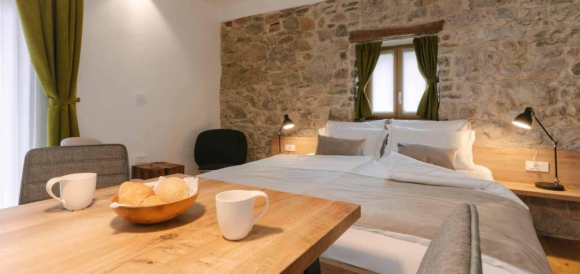 The hotel's interiors have been designed to blend harmoniously with the natural rock walls. The lighting evokes warm, daylight, and the spaces radiate coziness. The rooms welcome guests with minimalist yet stylish furnishings, there is no signal strength, no Wi-Fi, only silence and peace.