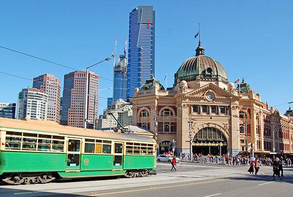 Kellemes meglepetés, hogy a belvárost körbe lehet jár ni a Circle Tram névre hallgató villamossal, s a hangosbe mondóban a vezető turisztikai információkat ad az utasok nak. A város szíve a Federation tér a Yarra folyó partján. Itt mindig nagy a tömeg, ingyenes koncerteket adnak zene karok, kiülős vendéglőkben folyik a sör, s sokan kávéznak.
