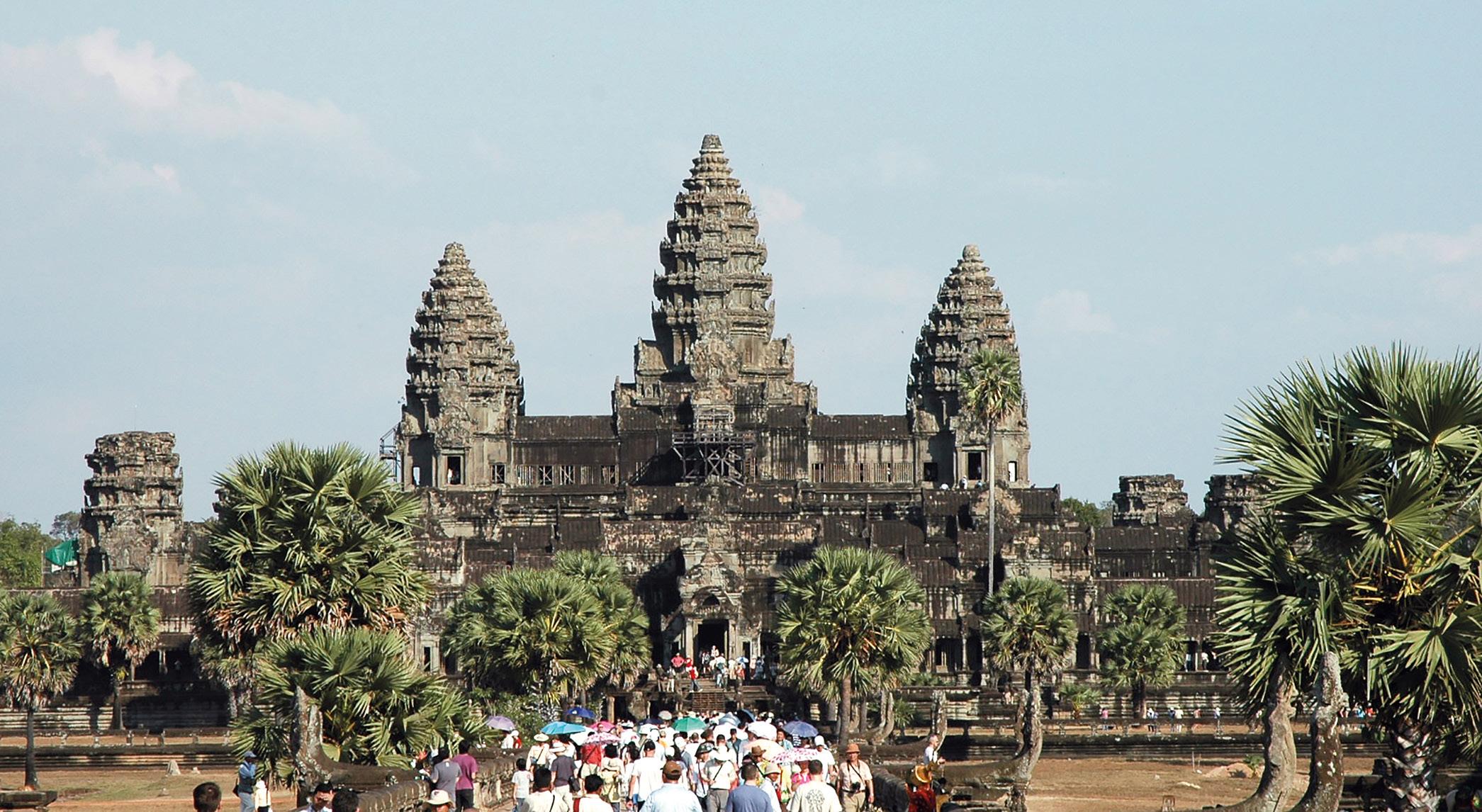 Évi egymillió turista keresi fel a Siem Reap nevű városhoz közel eső őserdőt, ahol a különböző királyok uralma alatt több száz templomot építettek a dzsungelben. A királyság az 1330-as években hanyatlásnak indult, kifosztották, a kormány áthelyezte innen a székhelyét, s Angkor szép lassan feledés be is merült. A csodás templomokat elnyelte az őserdő. 1860-ban egy francia kutató fedezte fel újra, az 1900-as évek elején elkezdték feltárni, ami a hatvanas évekig tar tott. Ez követően évtizedekig háború dúlt, s Angkor tulaj donképpen csak az elmúlt 15-20 évben látogatható. Az Unesco a világörökség részének nyilvánította. Siem Reapből Angkor tíz percre van, sokan motortaxit, vagy kerékpáros riksát fogadnak. Angkor bejárata olyan, mint egy országokat elválasztó határ. Beléptető kapuk so kasága, őrök százai. Csak fényképes igazolvánnyal lehet bemenni az ősi birodalom területére. Háromnapos jegyet kell váltani, ennél rövidebb látogatásra szóló biléta nincs. A fő látványosság az Angkor Wat. Ez a legnagyobb temp lom, három csúcsa tulajdonképpen Kambodzsa jelképévé vált. Az Angkor név az ősi uralkodó várost jelöli, a Wat pe dig khmer nyelven templomot jelent. Annyi a turista, hogy lépni alig lehet. A délutáni lemenő napban a legszebb a templom, ezért mindenki ebéd utánra hagyja a hindu világ legnagyobb vallási épületegységének megtekintését.