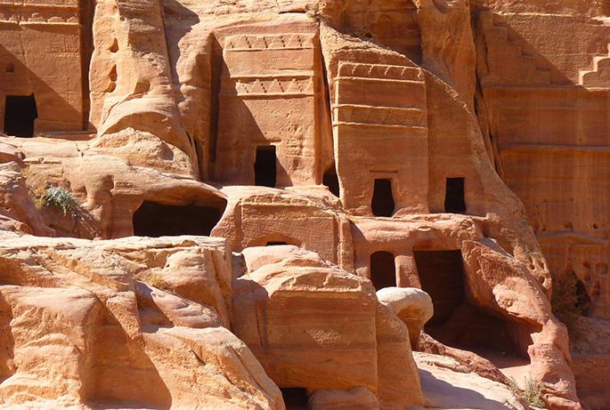 tetlen élmény a barna, vörös, sárga, fekete színű óriásszik lák között lépkedni. Petra védelmét éppen ez a sziklahasa dék biztosította.