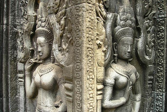 A Visnu tiszteletére emelt templom körül 190 méter széles vizesárok húzódik. A templom háromszintes, vörösagyag ból készült, s öt tornya van. Különleges élményt nyújt, hogy háromezer falakba vésett nimfaalakot láthatunk, s természe tesen mind másmilyen. Emellett sok lapos domborművet fedezhetünk fel, s említést kell tenni a Buddha Galériáról is, ahol több száz Buddha-kép volt egykoron – ma sajnos alig, mert az illegális műkincs-kereskedelem áldozatává estek.