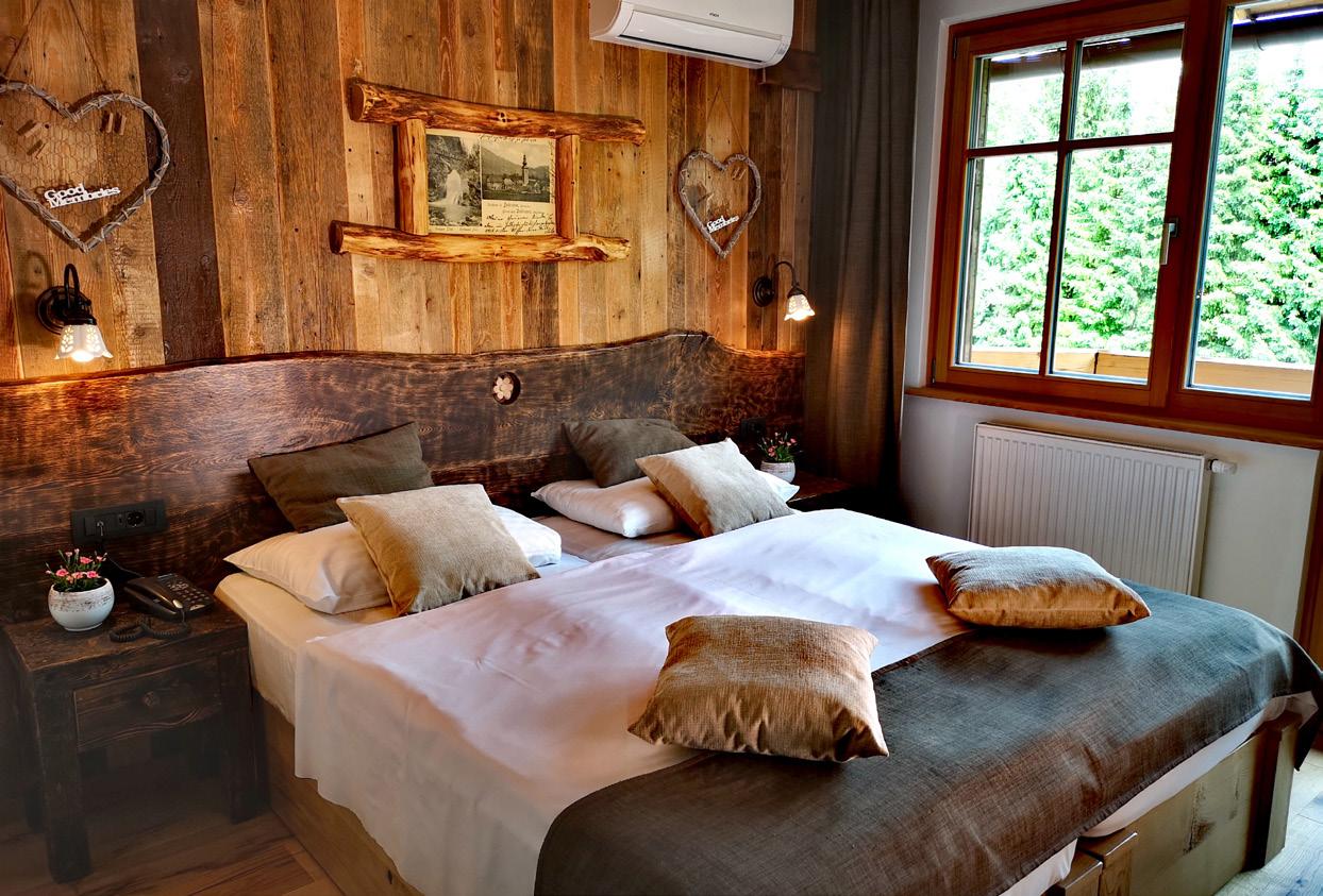 Szállodánk alpesi életmód kialakításával és melegséggel várja vendégeit a lélegzetelállító hegyek ben. Elegáns régi fával és világos csomós tölgyfával ékesített hotelünkben kényelmes rugós ágyak biz tosítják a pihentető alvást. Szívesen betakarjuk a vendégeink fekvőhelyeit allergiamentes ágyneművel, s kérésre speciális párnákat is biztosítunk.