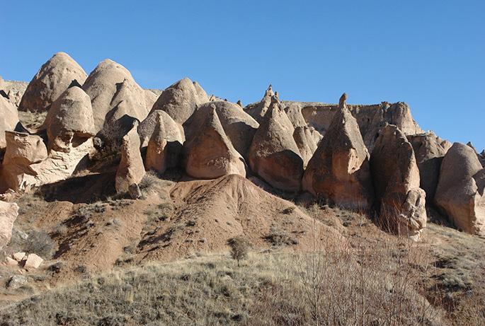 A hatvan millió évvel ezelőtt kialakult különleges táj az, ami azonnal magára vonja a figyelmet. A holdra emlékez tető területhez közel eső városok: Ürgüp, Göreme, Uchi sar, Avanos és Sinasos.