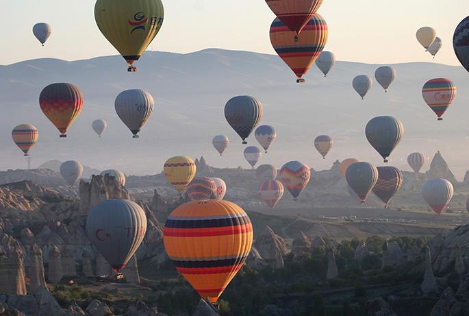 Kappadókiában rendkívül sok cég szervez hőlégballon zást. A hajnali napfelkelte előtt egy órával kell jelentkezni az utazásra, vagyis nagyon korán kell kelni ehhez a szóra kozáshoz, ami ráadásul nem is olyan olcsó. A 45 perces le begés fejenként 80-90 ezer forintba kerül, attól függően, hogy milyen vállalkozásnál sikerül előre helyet foglalni. In terneten keresztül többnyire drágább az utazás, a szemé lyes jegyvásárlás esetén néha még alkudni is lehet, hiszen Törökországról van szó, ahol ez elfogadott. Fontos tudni, hogy a hőlégballont oda viszi a szél, ahova éppen fúj.