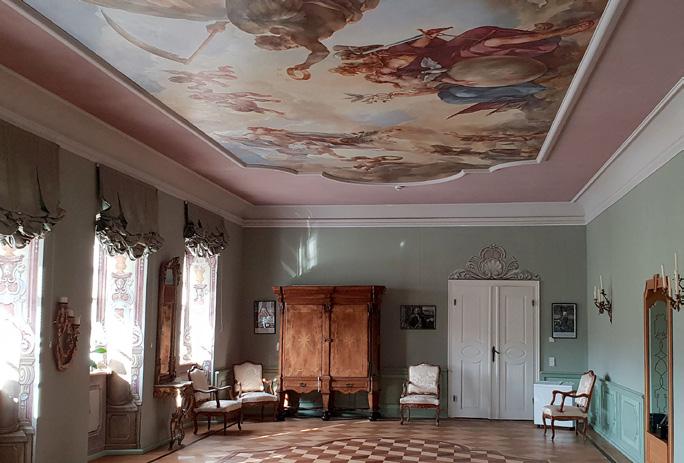 A kőterem fölé épített fa galériára a helyiség végeiben található lépcsőkön jutunk fel. Ott aztán egy hosszú aszta lon számtalan színű és formájú virágot találunk, melyeket a szorgalmas szerzetesek folyamatosan rendezgetnek. Érdekes, ahogy a kültéri és beltéri részek kombinálód nak, miközben félig-meddig a szabad ég alatt sétálhatunk tovább az Új Palota nevű épületrész felé.