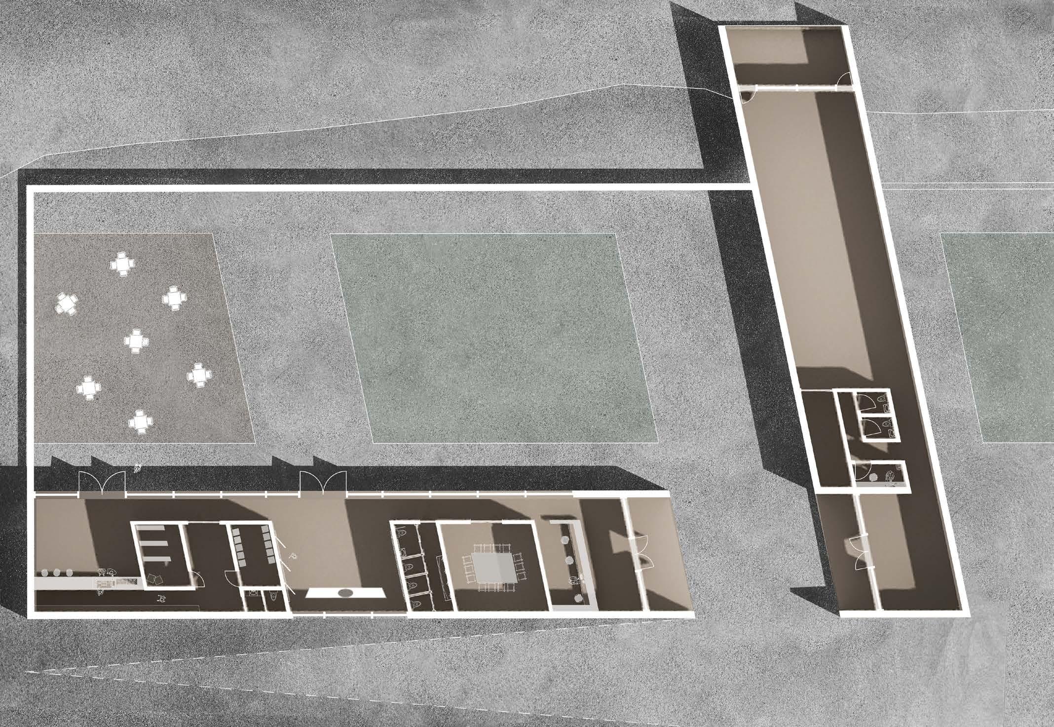 The design reflects prominent directional persistencies found in Maxxi Museum as well as displaying symmetrical and axial conditions from Villa Rotunda.
