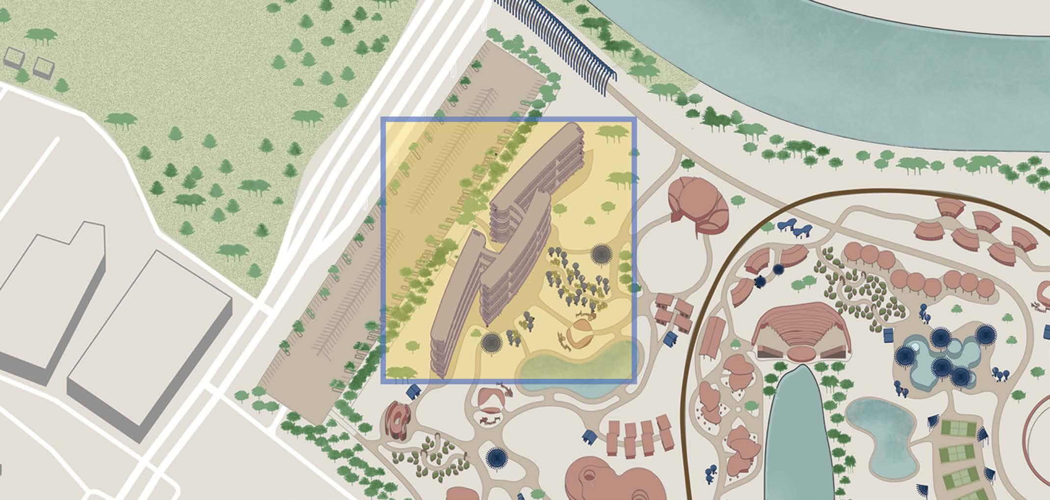 We researched areas facing high heat and respiratory diseases, focusing on the role of impervious surfaces and their embodied energy. Our intervention at an asphalt plant transformed the site into a permeable, walkable community that promotes sustainability, enhances the well-being of the affected neighborhood, and catalyzed the continuation of a greenbelt along Houston’s most polluted areas.