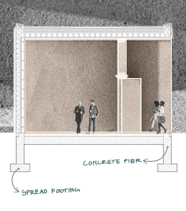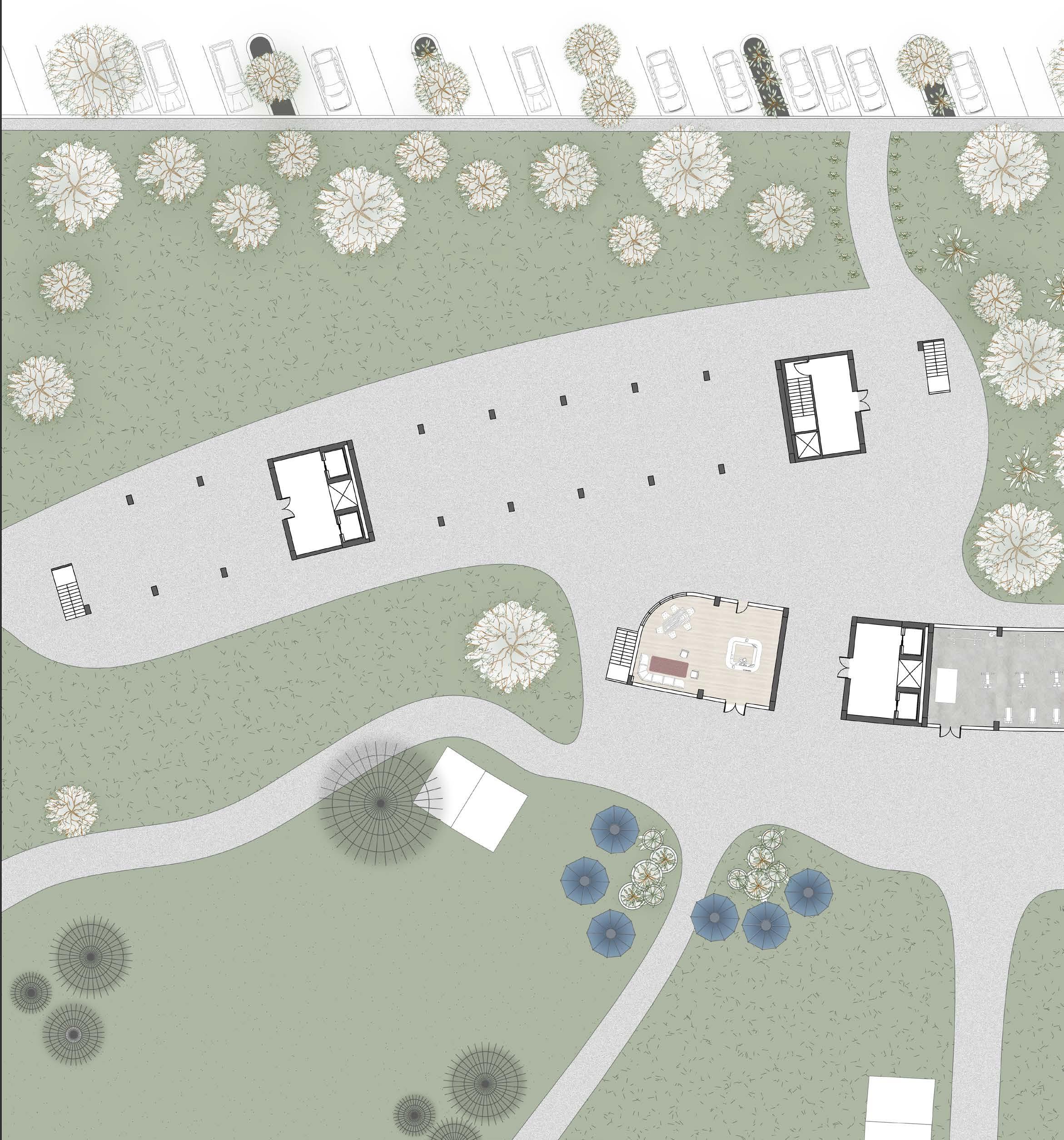 The architectural arrangement of the site as a whole serves the inhabitants, living and nonliving, but also invites the broader commons into the shared activities each building offers. The integration of permeable surfaces, car-free development , as well as the use of shade and rainwater collection as infrastructure throughout the site mitigates the excessive heat in houston.