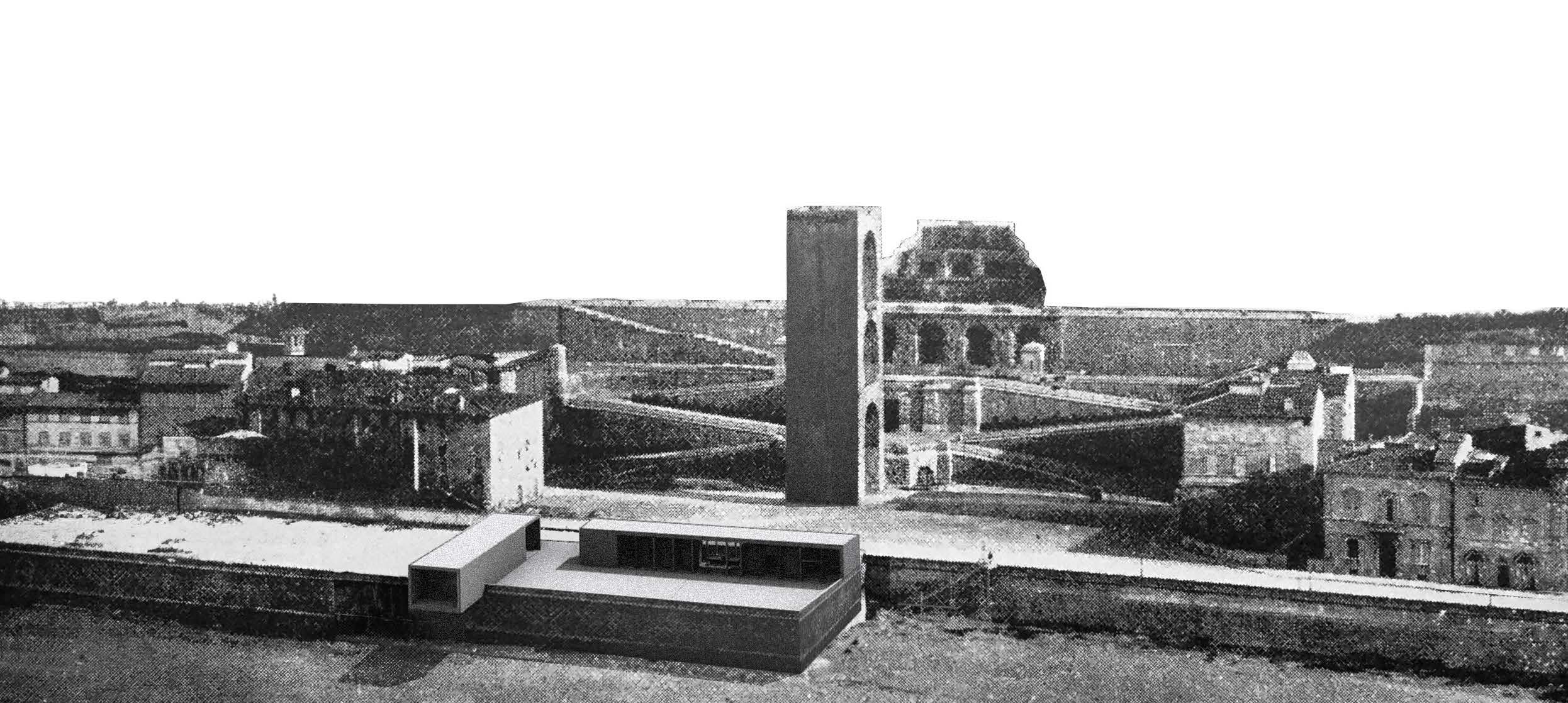 Asked to design an architectural museum in Piazza Poggi, an incomplete historical plan at the foot of the Piazzale Michelangelo, that evokes the feeling of the rich history around it without ingenuinely replicating it.