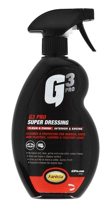 • G3 Pro Super Dressing odstraňuje nečistoty, prach, špínu a mnoho odolných nečistot