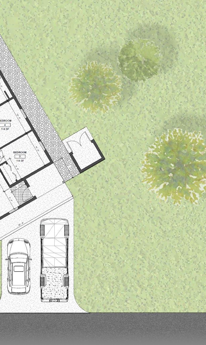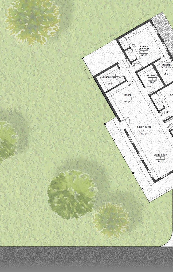 During this semester, the studio recieved a grant to design a house typology as well as a neighborhood masterplan for Habitat for Humanity house. Additionally, the exterior of the house were cladded in concrete panels. The masterplan had to be open, so we created spaces for shared outdoor spaces. The house is a total of 1250 square feet. The design of the house is an offset shotgun, dividing the house into semi-public and private spaces. The left side of the house includes a foyer entry, a living area, a dining room, a kitchen, and a separate laundry/pantry space. On the opposite side of the house, there are three bedrooms and two bathrooms,