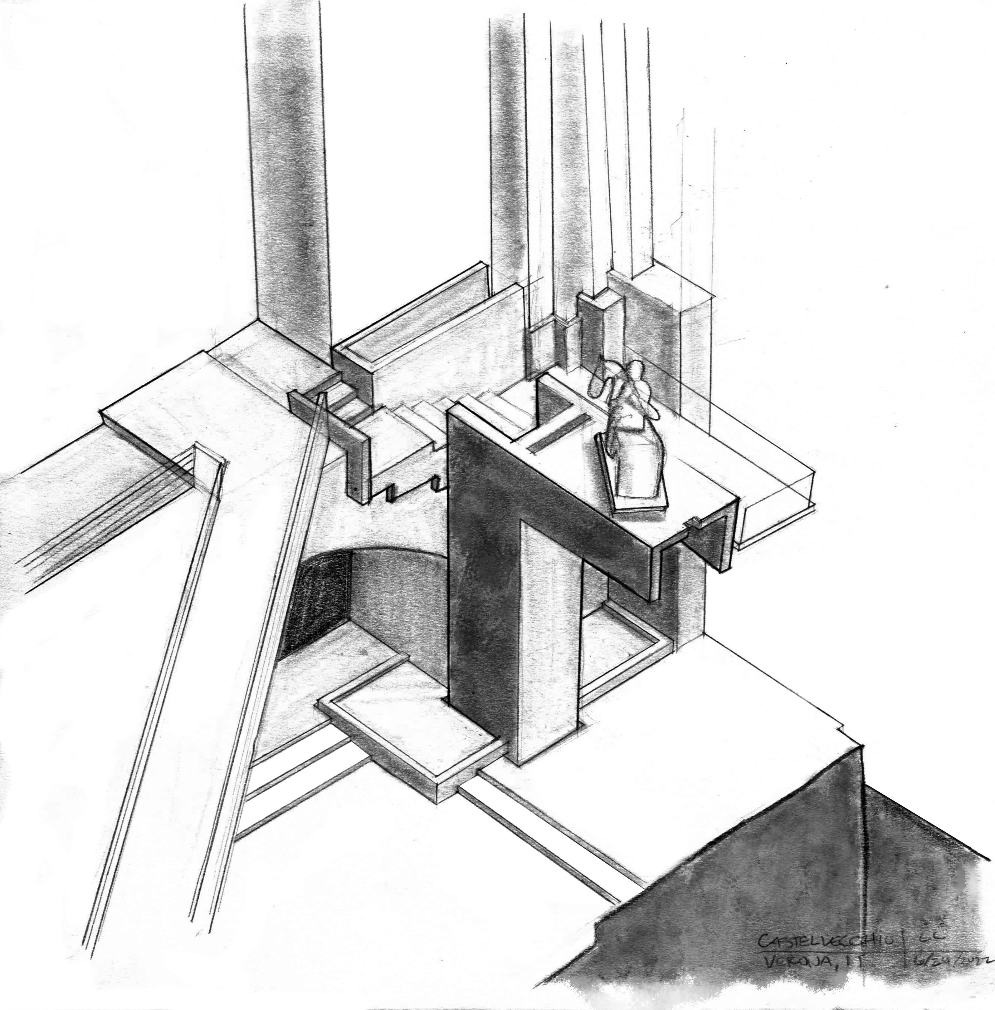 For this project, we were tasked to design an art museum on a relatively sloped site. We began this project by exploring a series of geometric composition which lead to the overall composition for the art museum. For my art museum, I wanted the guest to be able to experience not only the art in the galleries, but also the beauty of the site and its views. To get from one gallery to another, one would travel above the ground to on a series of ramps. This provides a continuous view as one travels down the ramp. On the