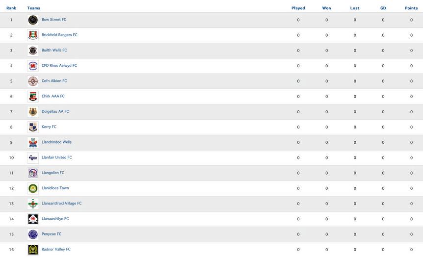 In 2012–2013, Llandrindod had a very good start to their Mid Wales League Division 2 campaign, going undefeated in the first 10 games, but the side fell away after Christmas and finished the season as runners up to eventual winners, Llanfair United. Both clubs were promoted to the Mid-Wales League Division 1 for the 2013–14 season.